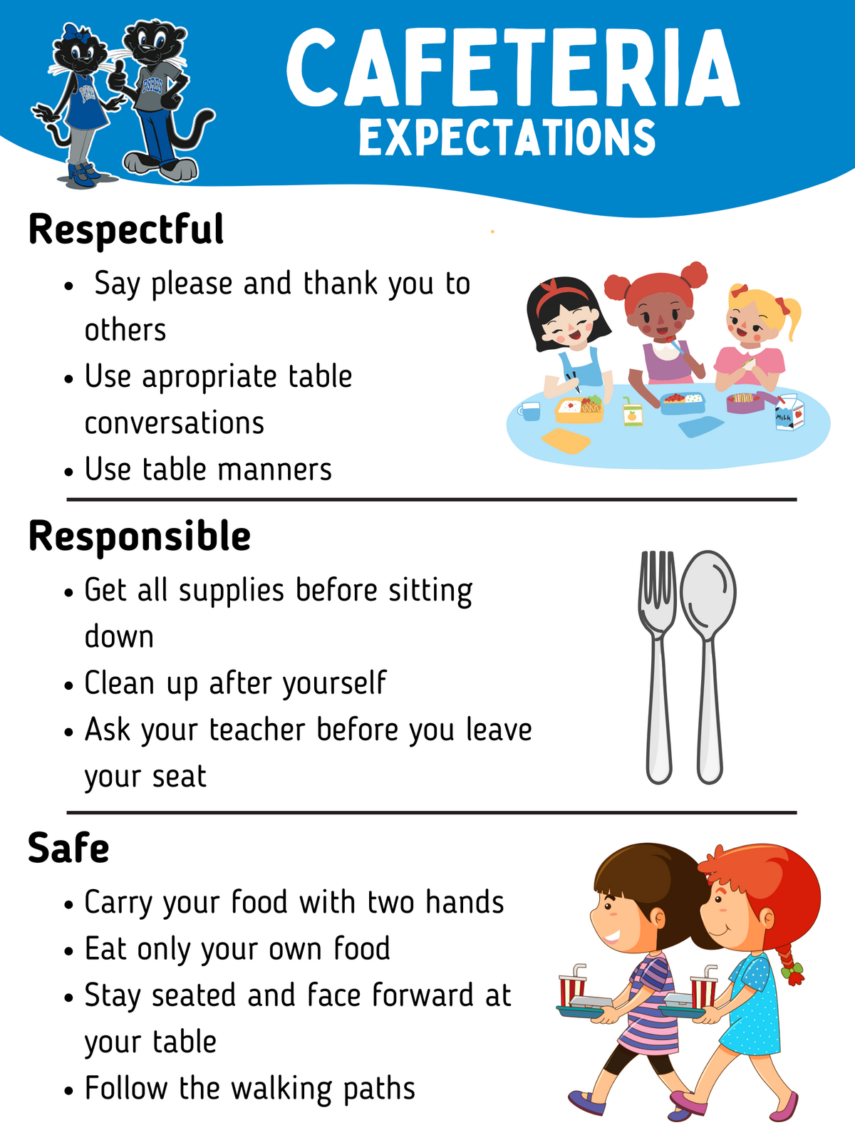 This week we are reviewing Cafeteria Expectations! Cafeteria ExpectationsRespectful:-Say please and thank you to others-Use appropriate table conversations-Use table mannersResponsible:-Get all sup...